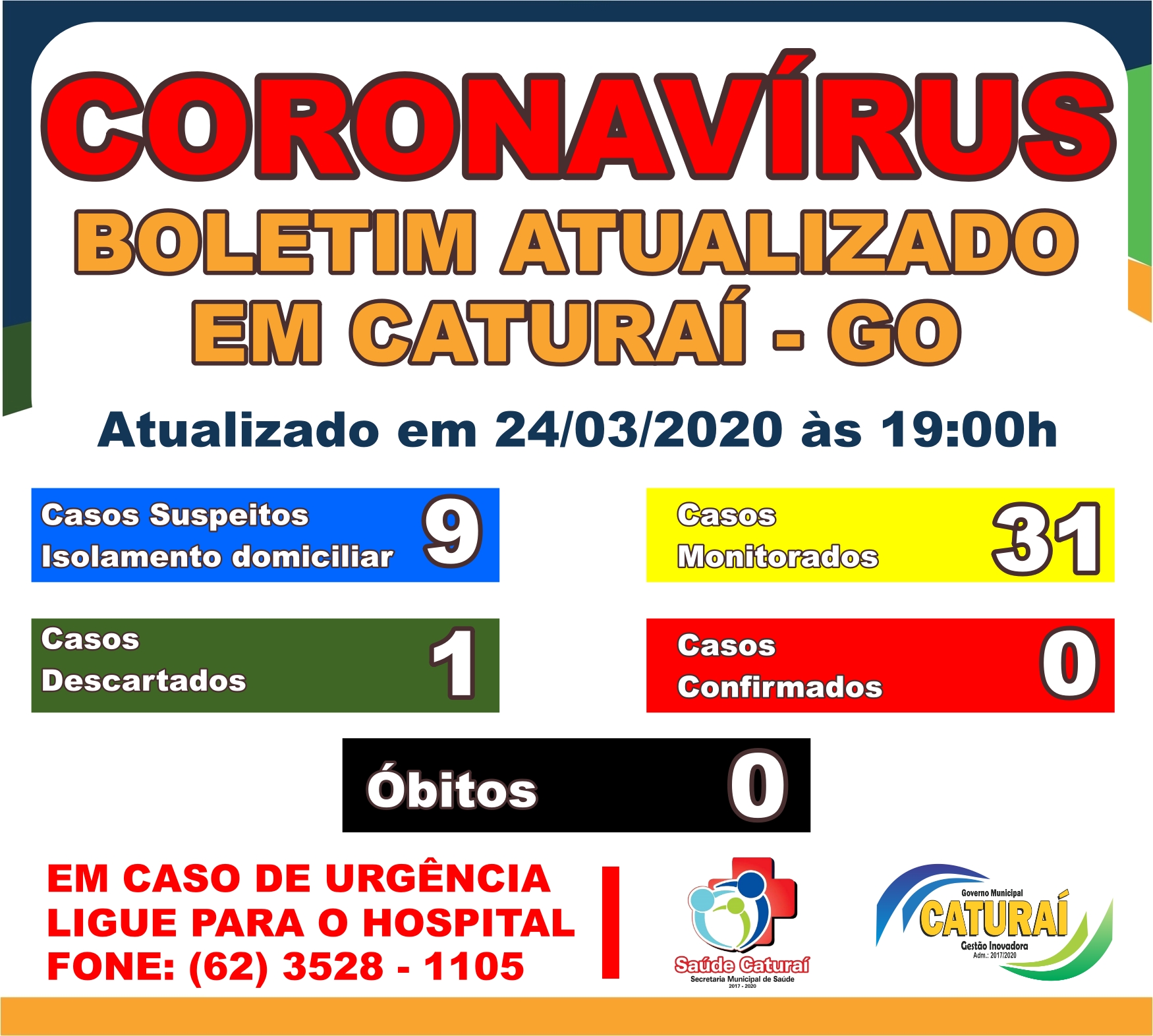 CONFIRA AS INFORMAÇÕES SOBRE OS CASOS DE CORONAVÍRUS EM CATURAÍ (24/03)