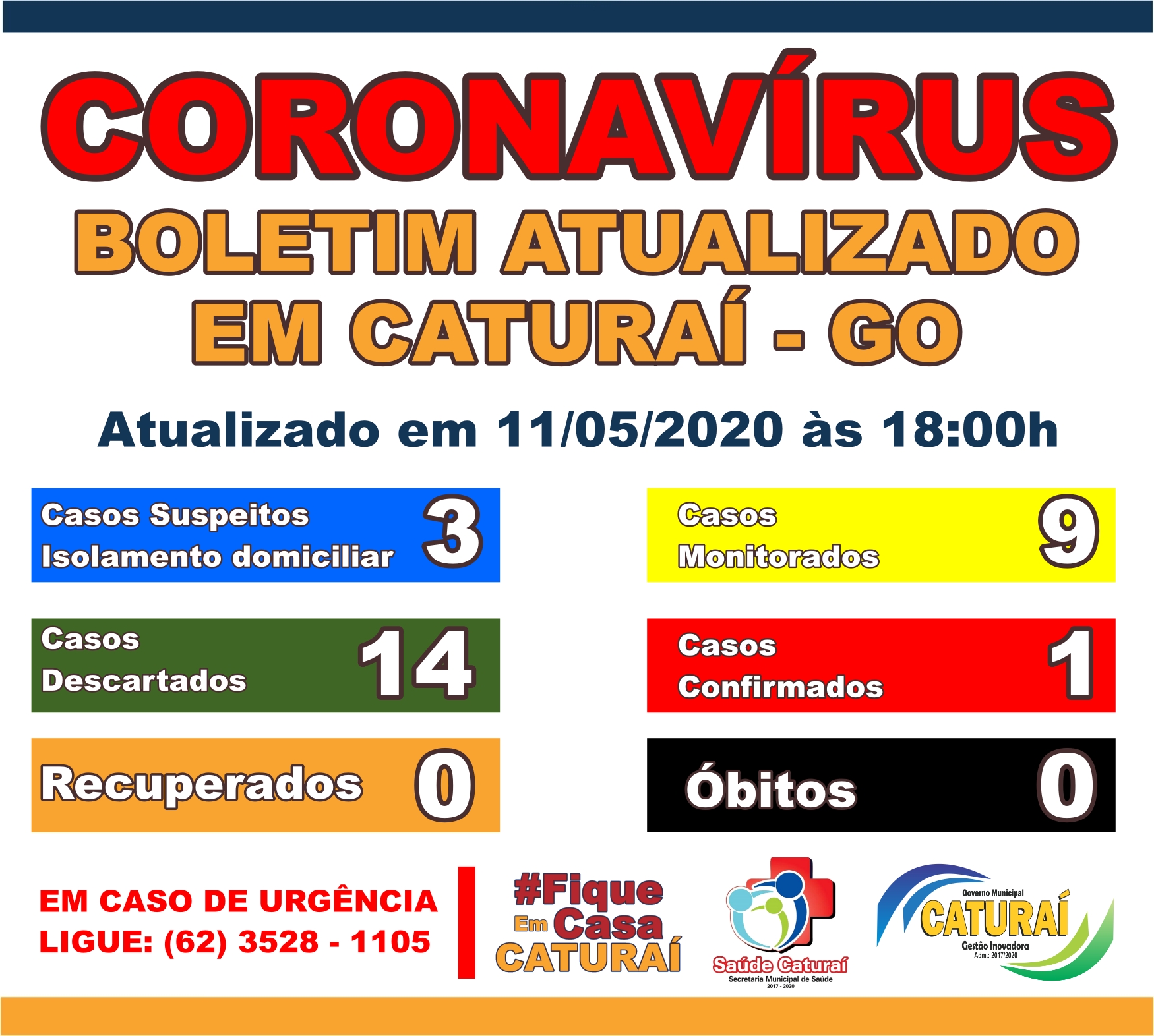CONFIRA OS DADOS DO CORONAVÍRUS DESTA SEGUNDA (11/05) EM CATURAÍ