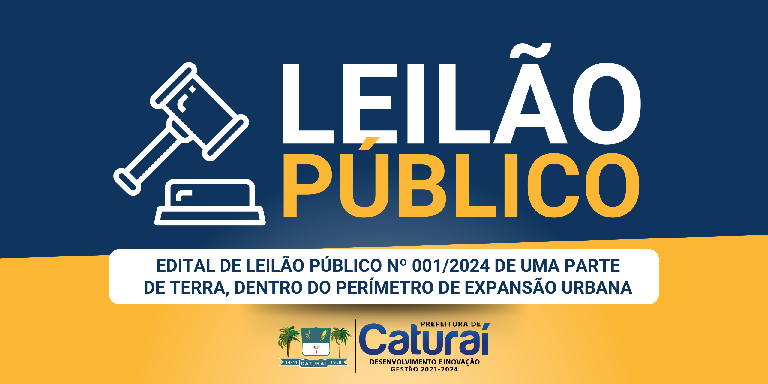 A Prefeitura de Caturaí por meio de suas atribuições legais torna público o Edital de Leilão Público nº 001/2024 de uma parte de terra, dentro do perímetro de expansão urbana.