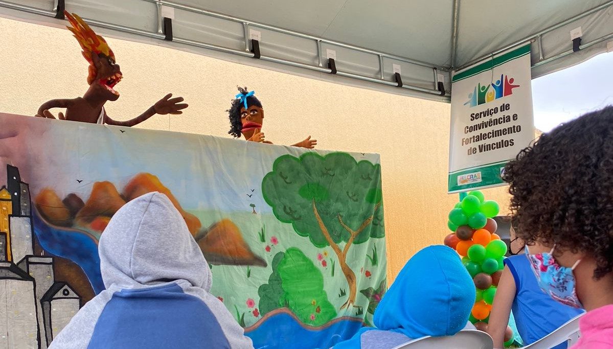 A apresentação teatral para as crianças foi uma iniciativa da Secretaria de Assistência Social e contou com a parceria da Secretaria de Meio Ambiente.