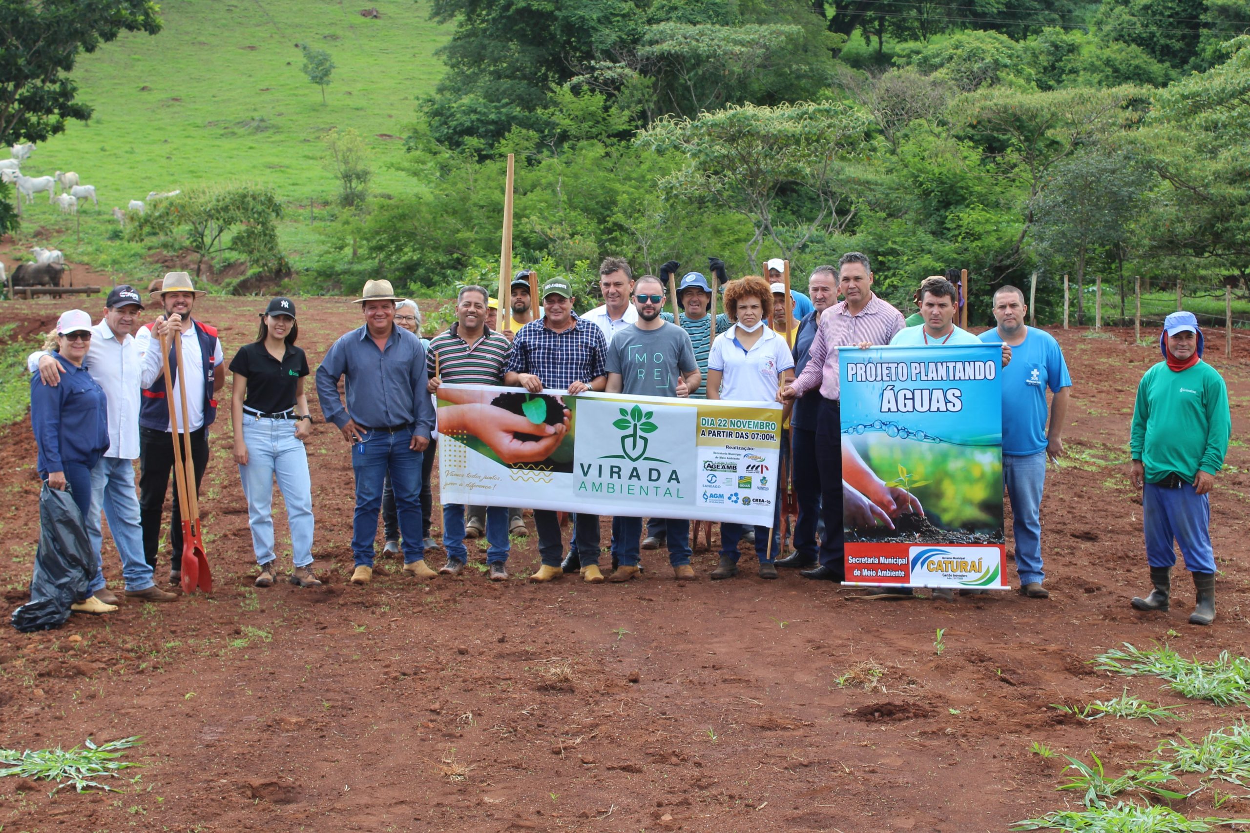 A Prefeitura de Caturaí por meio da Secretaria de Meio Ambiente realizou na manhã desta quinta-feira, 08, a 4ª Edição da Virada Ambiental. A ação foi realizada na Fazenda Pôr do Sol, de propriedade do senhor Alex Santiago e foram plantadas cerca de 500 mudas nativas do cerrado.
